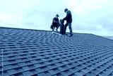 Construction workers Installing chimney and building construction concept. Contractor Builder with blue hardhat on the roof caulking chimney
