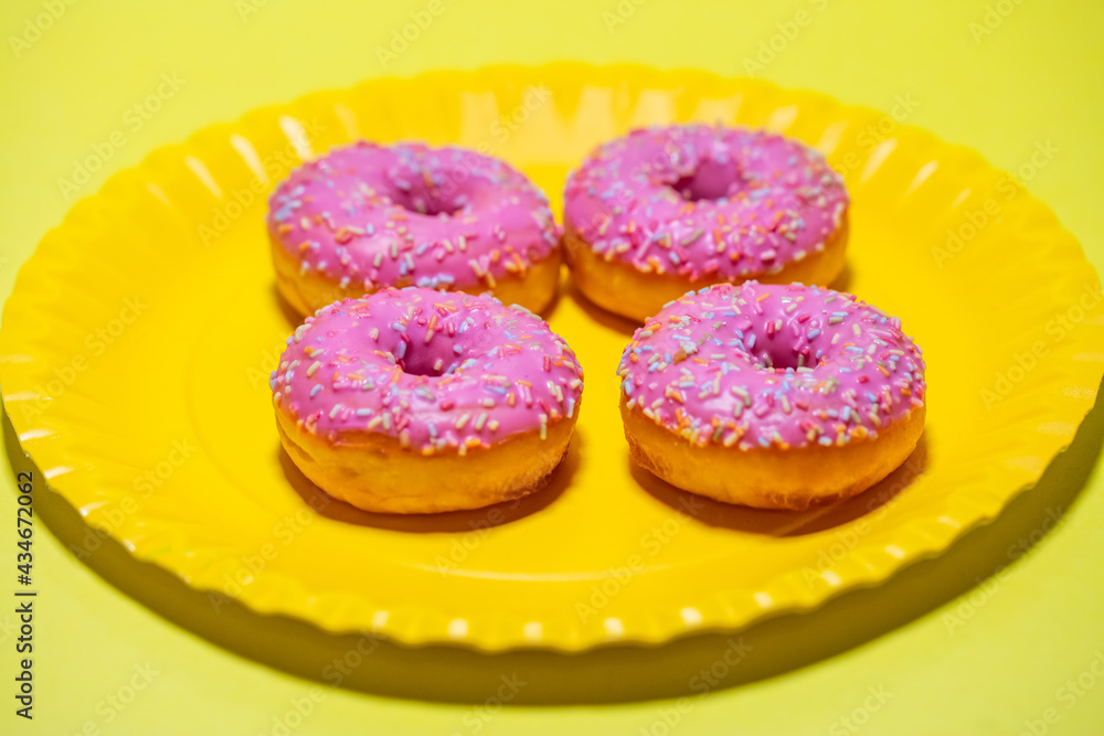 pink donuts on yellow background