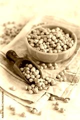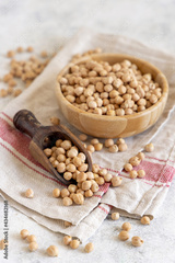 Bowl of raw dry chickpea with a scoop