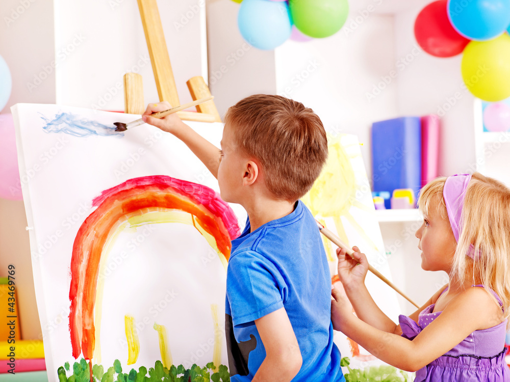 Child painting at easel.