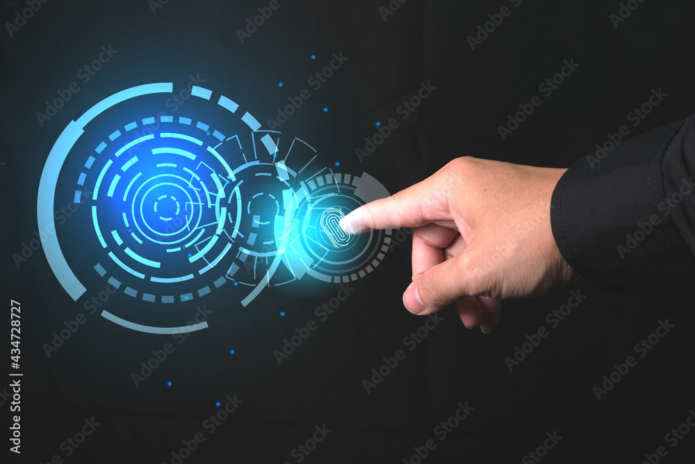 Businessmen are scanning their fingerprints to access financial transactions and the latest technology in fingerprint security and control.