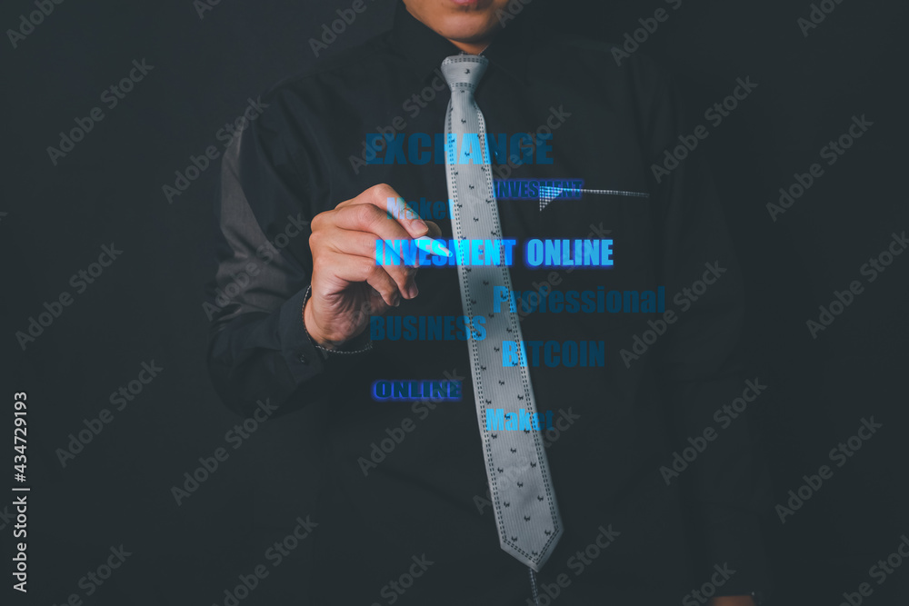 Investment idea businessman uses a pen to select the item on the touch screen and select Service. Business idea 2021