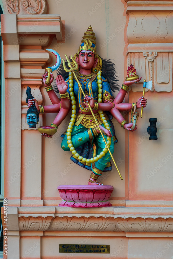 Colourful statues of Hindu religious deities adorning the interior of a Hindu temple in Singapore.