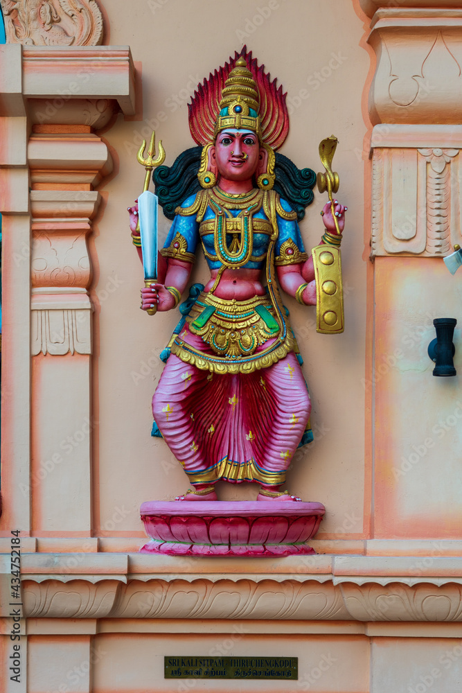 Colourful statues of Hindu religious deities adorning the interior of a Hindu temple in Singapore.