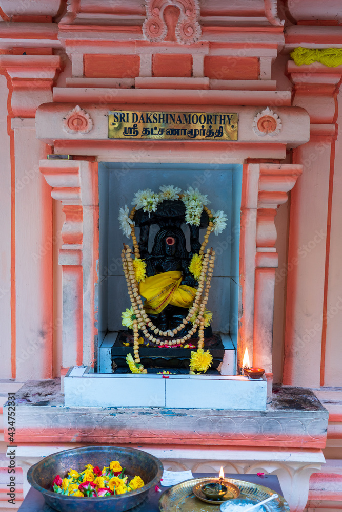 Colourful statues of Hindu religious deities adorning the interior of a Hindu temple in Singapore.