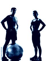 man woman exercising workout fitness ball