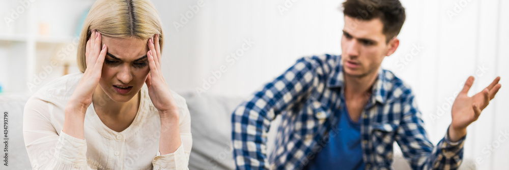 The man and woman quarreling on the sofa