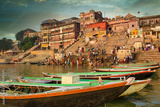 Varanasi, India : Dashashwamedh Ghat is the main ghat on the Ganga River in Uttar Pradesh. It is located close to Vishwanath Temple. People participating in holy rituals.