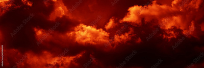 Fiery red dramatic sky. Fire, war, explosion, catastrophe, flame. Horror concept. Web banner. Bloody red background with copy space for design.