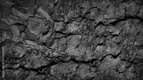 Black white grunge background. Rock texture with cracks. Stone wall background with copy space for text and design. Web banner. Dark gray rocky surface. Close-up.
