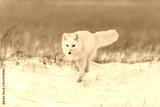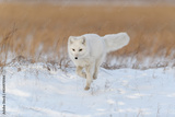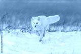 Wild arctic fox (Vulpes Lagopus) in tundra in winter time. White arctic fox running.