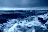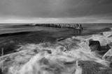 Morze Bałtyckie, kamieniste wybrzeże , falochron ,zachód słońca, Kołobrzeg, Polska.