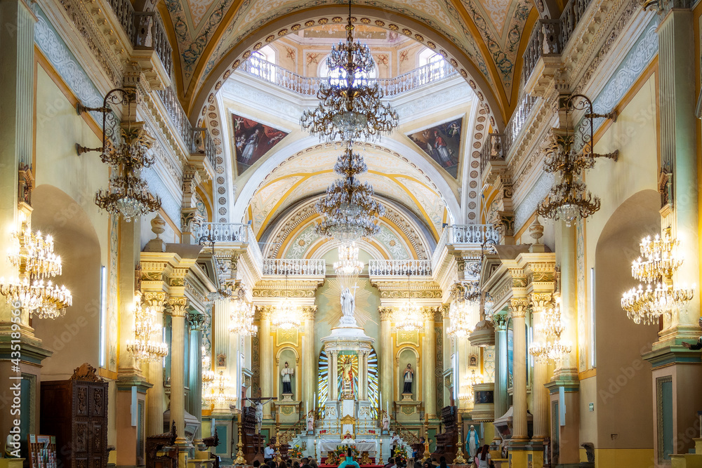 Interior of historical landmark Basilica Our Lady of Guanajuato in Guanajuato City, Mexico.