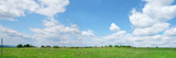 Natural summer rustic landscape. green field and blue clouds sky. bright summer countryside background. banner