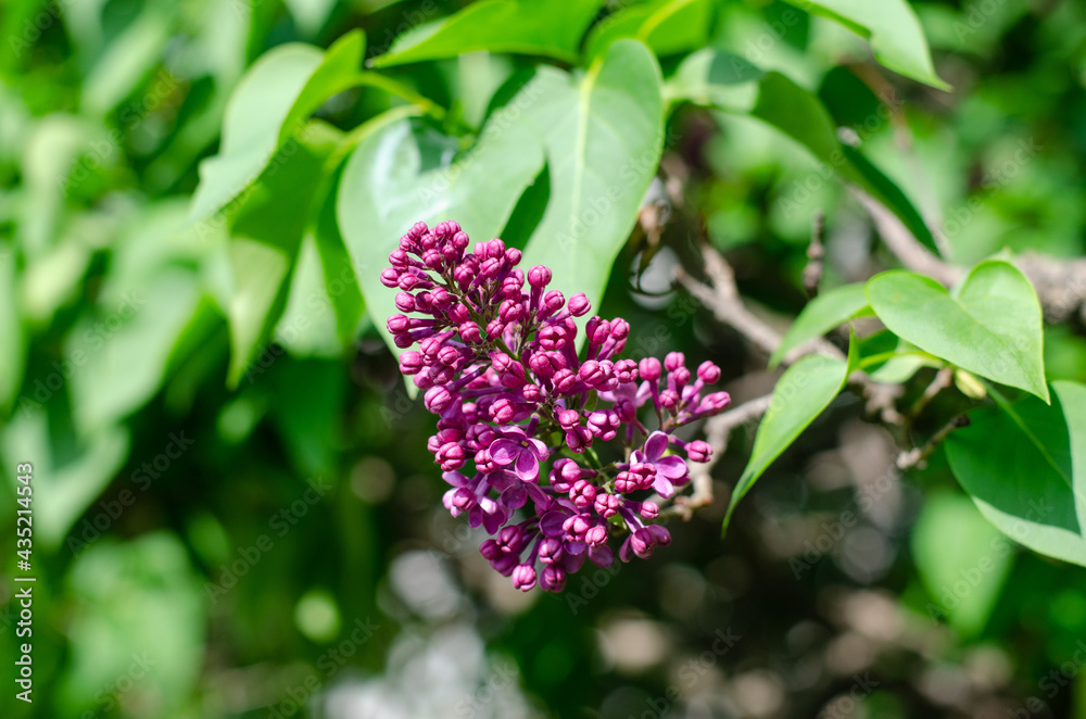 Spring flowers. Lilac. Bouquet of purple flowers. Flower bed.