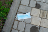 Medical mask. Pandemic. Garbage on the streets of the city. Covid 19