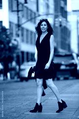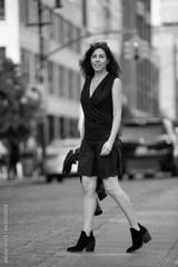 urban scene of a young woman wearing a black outfit