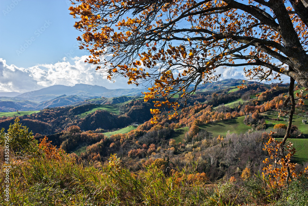 Sogliano al Rubicone, Forli-Cesena, Emilia-Romagna, Italy: autumnal landscape of the green hills on the slopes of the Apennine mountains