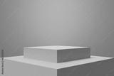 Blue 3D rendering of stage podium pedestal on orange background abstract.