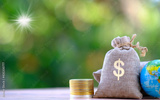 Saving money concept- money bag on table,and business growth concept, finance and investment conce