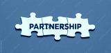 Cooperation, solidarity and support in business. The word partnership on connected puzzle pieces.