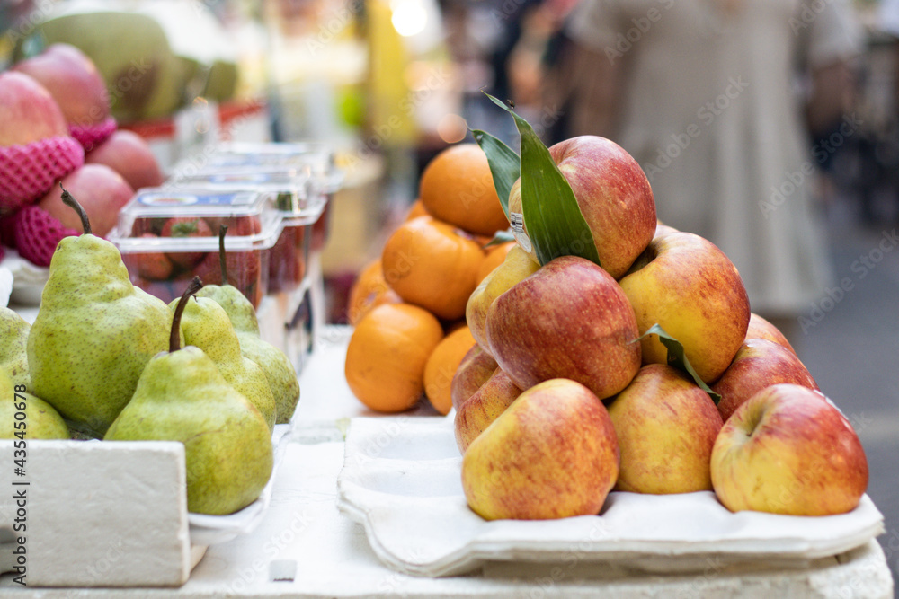 Buying and selling Fruit at Street food in Chinatown Bangkok Thailand and people high concentration of them in busy areas this is Landmark of Street food of Bangkok