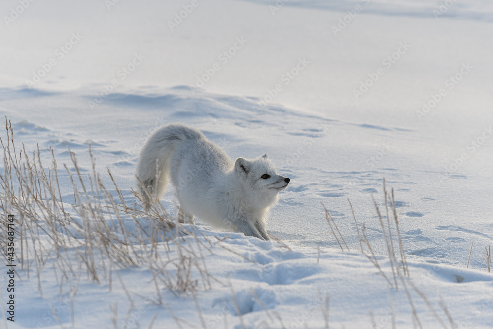 Wild arctic fox (Vulpes Lagopus) in tundra in winter time.