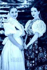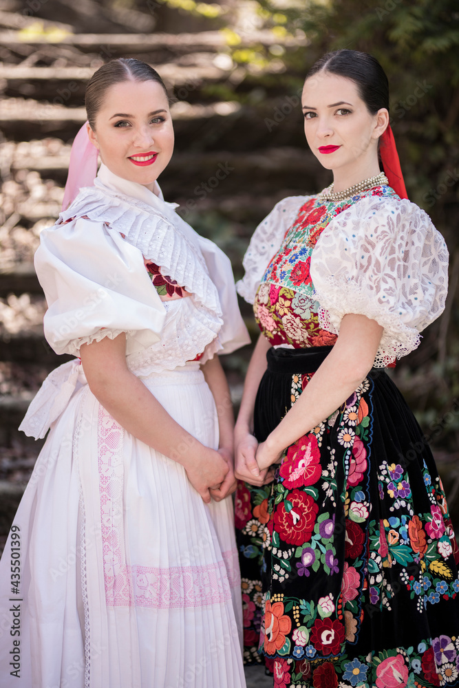 Young beautiful slovak woman in traditional dress. Slovak folklore