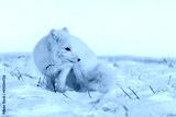 Arctic fox (Vulpes Lagopus) in wilde tundra. White arctic fox sitting.