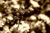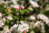 Beautiful spring apple tree flowers blossom, close up. Spring orchard branches sway in the wind.