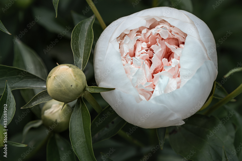 delicate white peonies in the garden