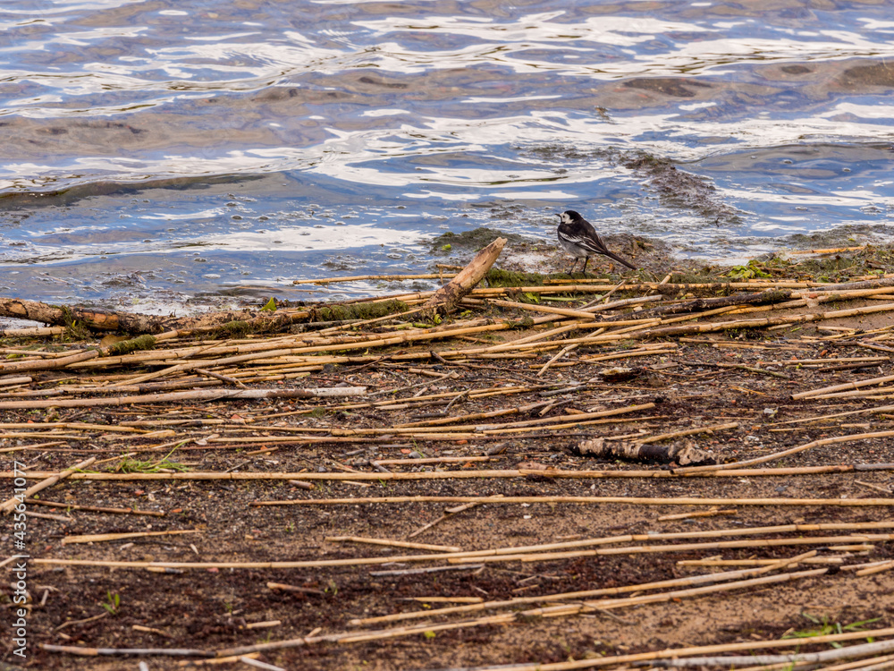 Whire Wagtail on edge of lake, Pickmere Lake, Pickmere, Knutsford, Cheshire, UK