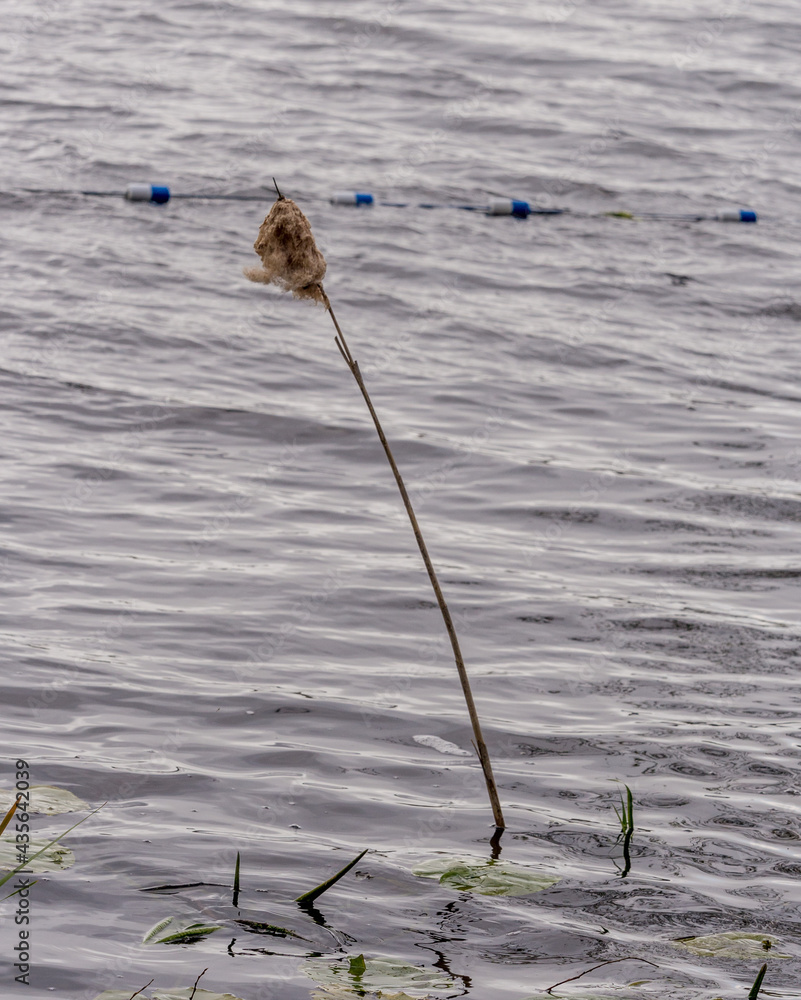 Newly planted bulrushes on the edge of Pickmere Lake, Pickmere, Knutsford, Cheshire, UK