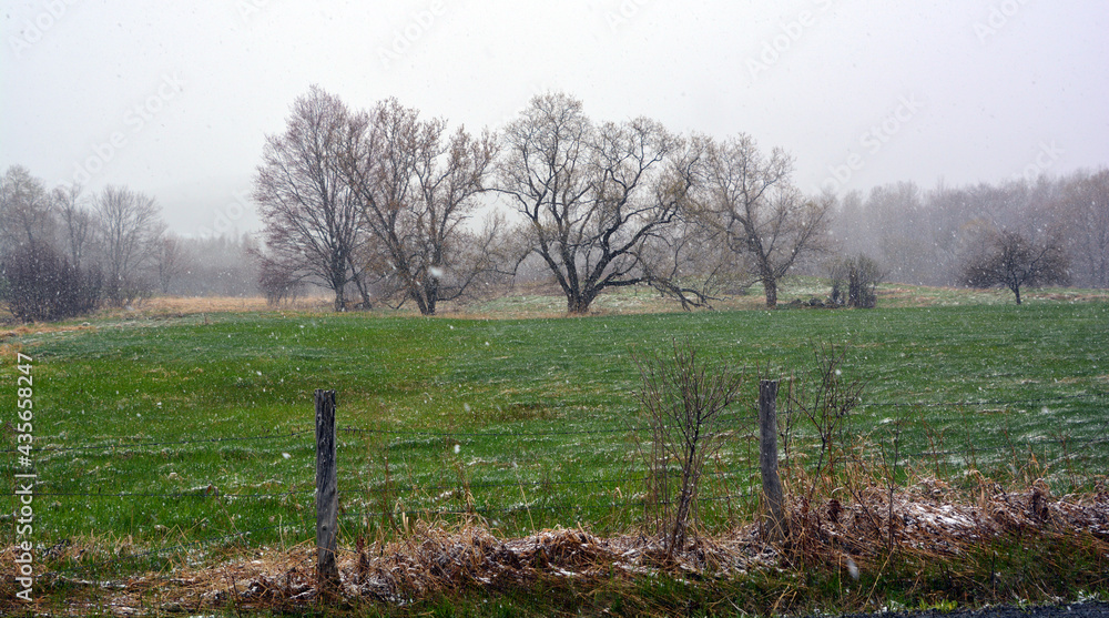 Late winter, early spring landscape in Bromont, Eastern township Quebec, Canada