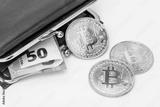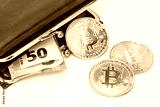 Bitcoin Münze als digitale Währung in Geldbeutel