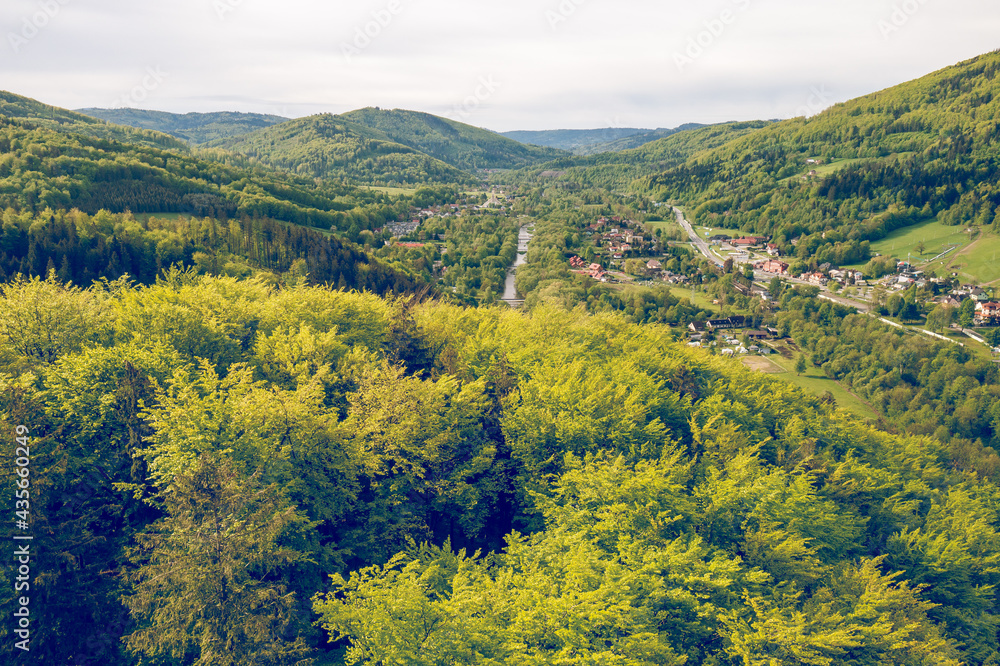 Ustron, Poland. View of Beskid Slaski mountain range, part of Carpathian mountains.Silesian Beskids.