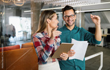 Successful group of designers, business people at work in office