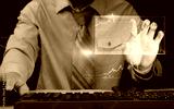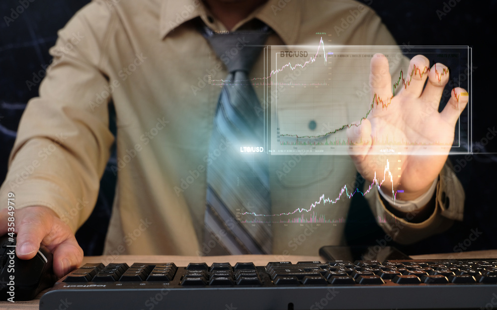 Businessman analysing forex trading graph financial data and Multi exposure of forex graph with man working on computer on background. Concept of market analysis