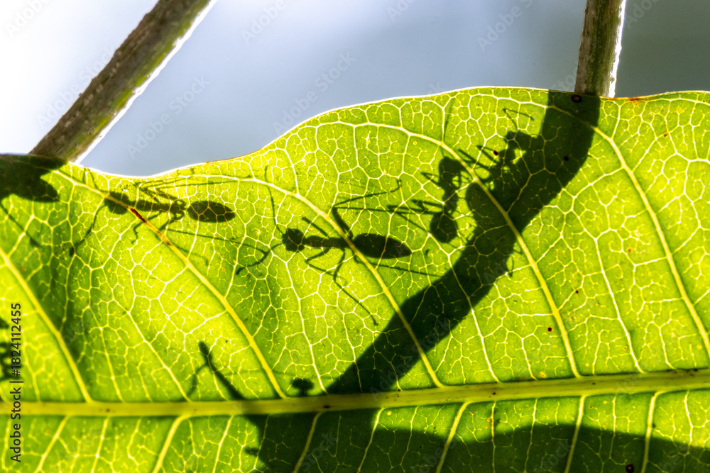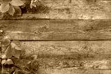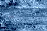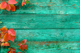 Autumn leaves on green vintage wooden background with copy space, flat lay