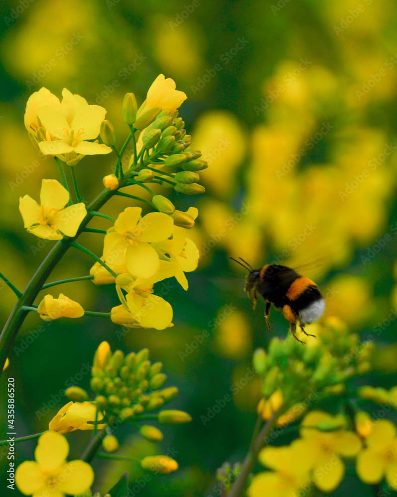 Vertical shot of a bumblebee on a beautiful rapeseed