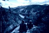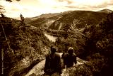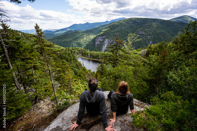 hikers looking at Lake Ausable at Indian head trail and Rainbow waterfalls near Keene in New York State.