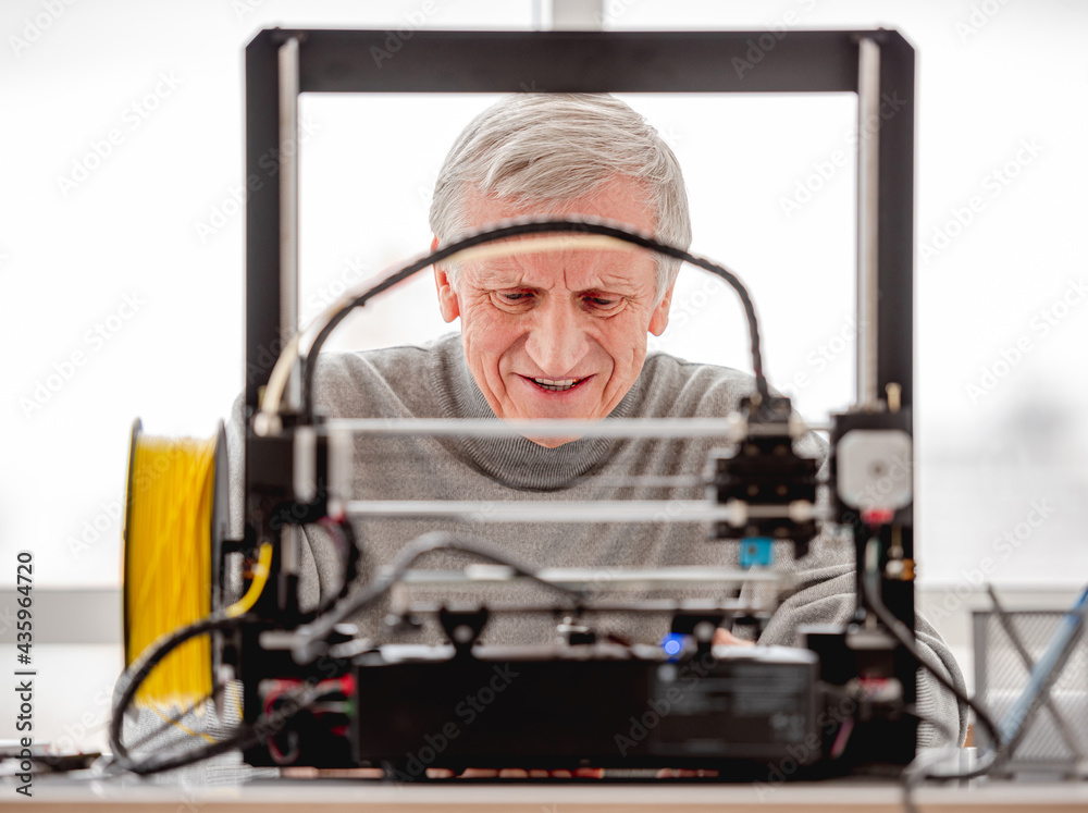 Man with 3D printer