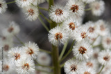 Close up view of a brunch with white fluffy flowers. Nature background.