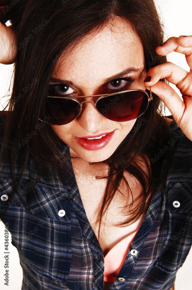 Closeup of girl with sunglasses.