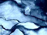 Abstract purple art with gold — violet and blue background with beautiful smudges and stains made with alcohol ink and golden pigment. Lilac fluid art texture resembles watercolor or aquarelle.