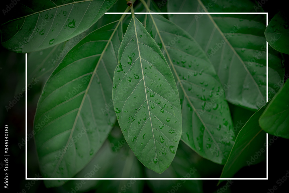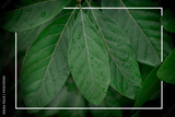 Creative layout made of natural green leaves with white rectangle frame . Flat lay. Nature concept