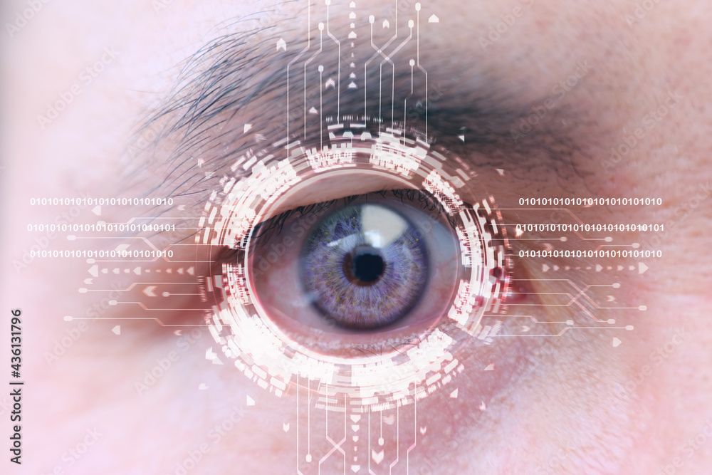 Future human with cyber technology eye panel concept, Man eye and high-tech concept, screening big data and digital transformation technology strategy, High Technologies