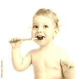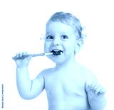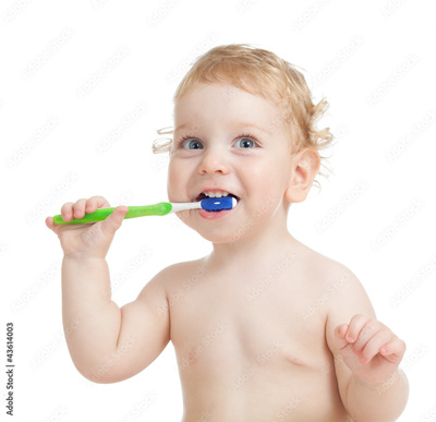 Happy child brushing teeth isolated on white