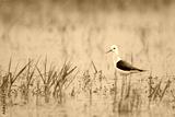 Black-winged stilt - himantopus himantopus wading in the water, red legs black and white wader