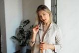 portrait of a beautiful young female in a suit at the office